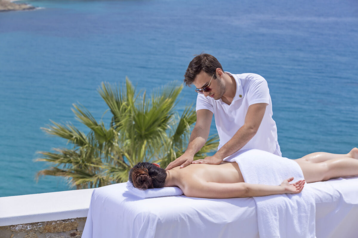 The hotel features elegant suites designed with modern amenities, soft tones, and sophisticated details that reflect relaxed island living. At Pietra e Mare – Mykonos Moments, many accommodations include private outdoor spaces or terraces with breathtaking sea views, allowing guests to fully embrace the calming atmosphere and uninterrupted vistas of the Aegean Sea.