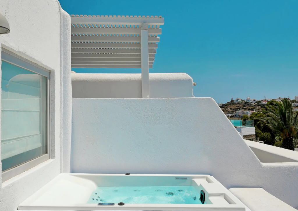 Guests can enjoy refined dining throughout the day, with the hotel’s restaurant serving modern Greek cuisine prepared with fresh, high-quality ingredients, complemented by relaxed all-day dining options. A traditional Greek breakfast with homemade and local products is offered every morning, while the bar and sky lounge host signature cocktails, music events, and lively sunset gatherings. With a rejuvenating spa, fully equipped gym, and attentive service, Andronikos Hotel Mykonos delivers a sophisticated adults-only hotel experience that captures the vibrant spirit of Mykonos.