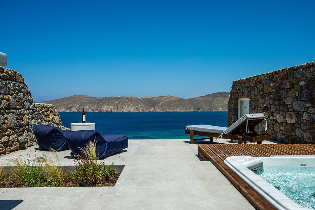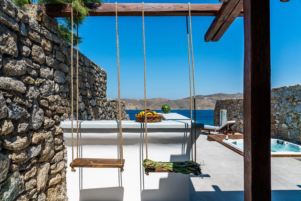 Let the villa’s Jacuzzi work its magic with a rejuvenating massage, while you sip drinks at the bar, gently swaying on the swings. ANASA, which means “breath” in Greek, is your opportunity to take a deep breath, unwind, and enjoy the peace and tranquility around you.